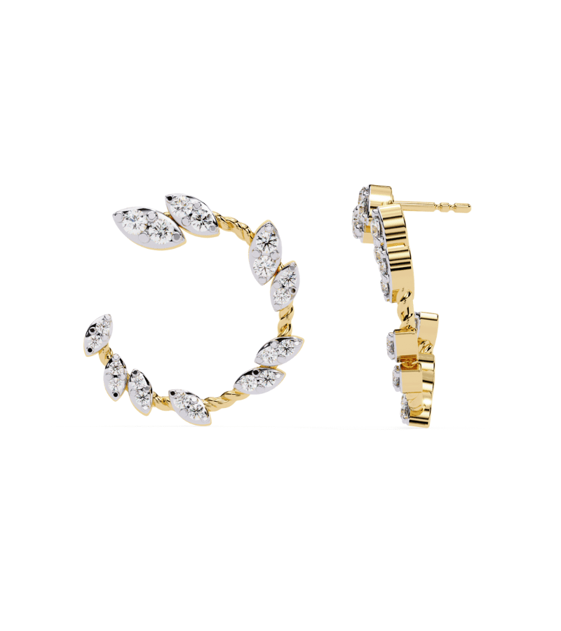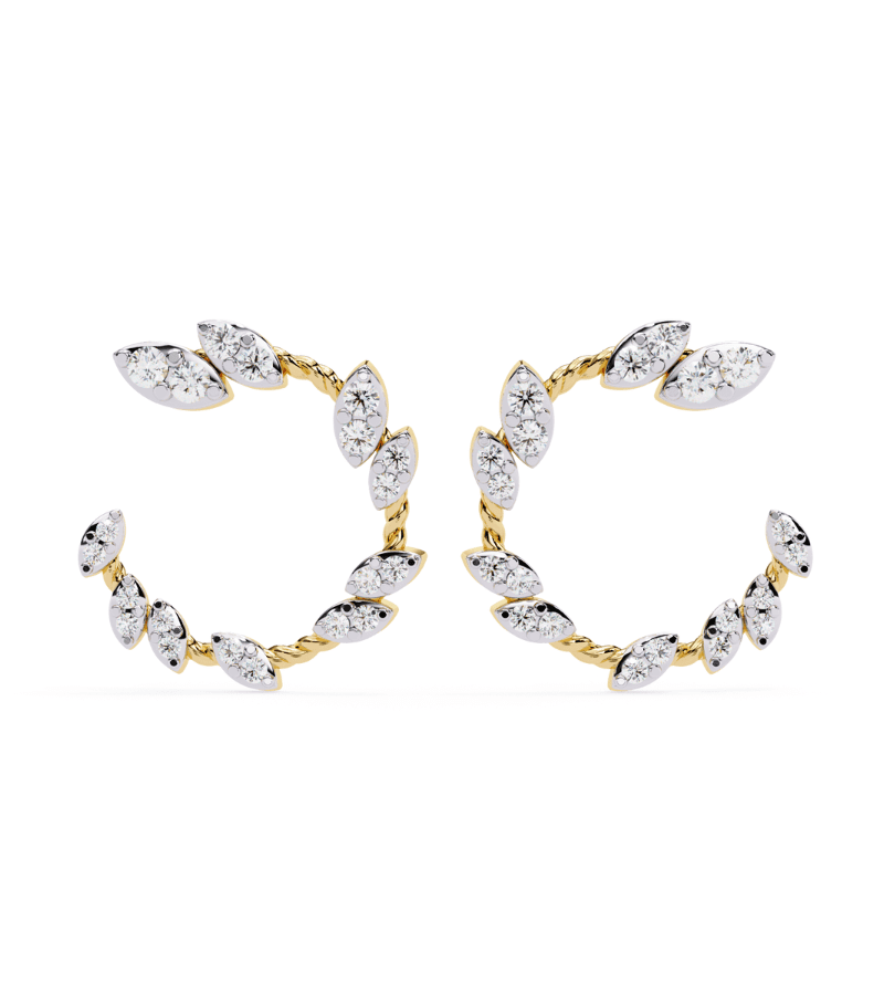 - Design: twisted gold-tone hoops formed from a series of leaf-shaped pavé clusters.