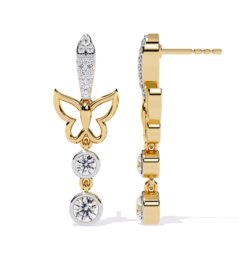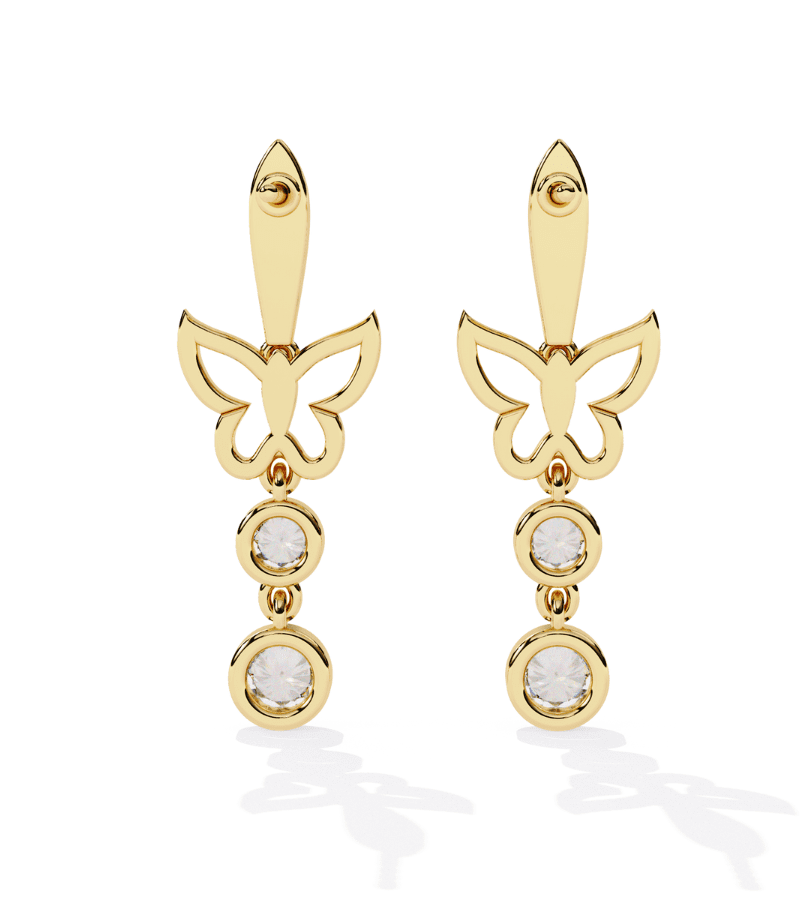 - Design: vertical drop earring with a gilded butterfly silhouette as the centerpiece.