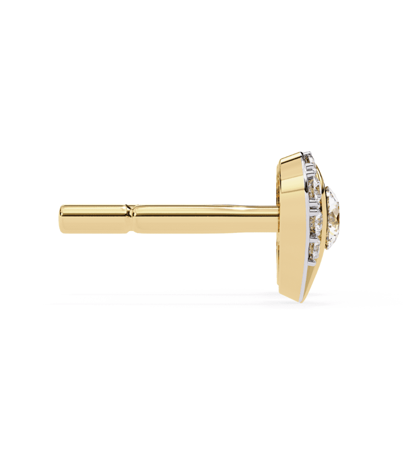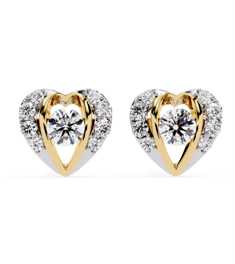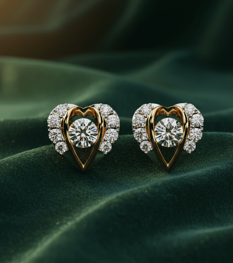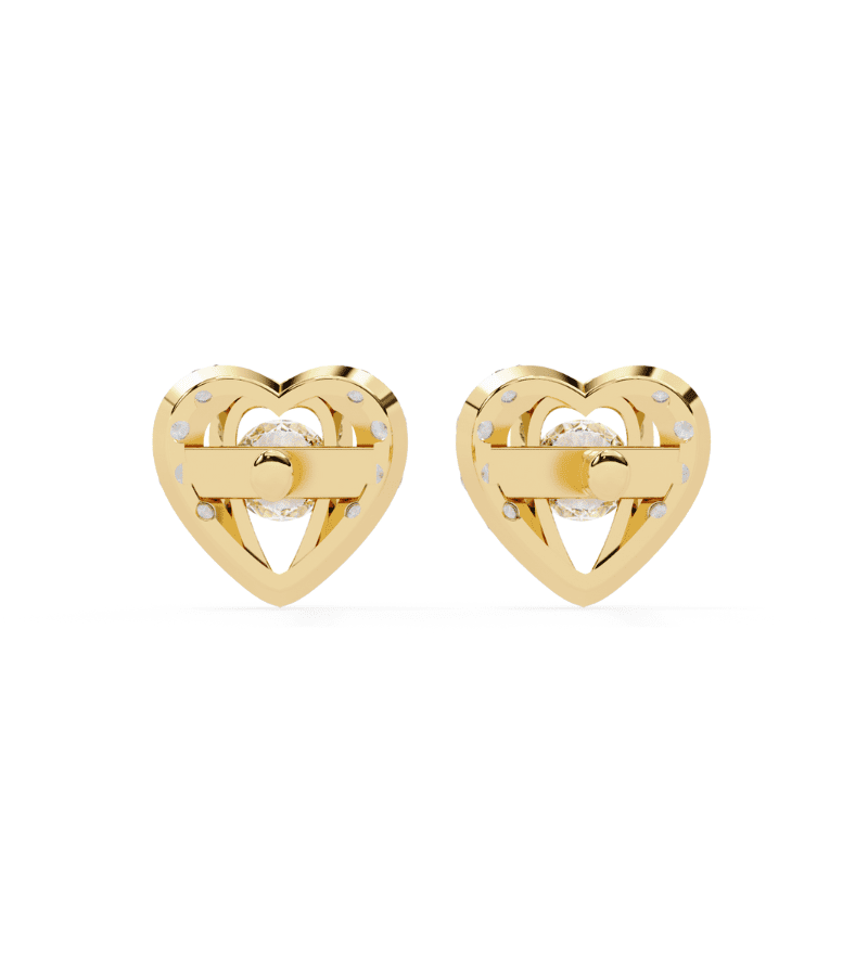 - Design: open heart silhouette in gold-tone with a pavé-diamond halo on each side.