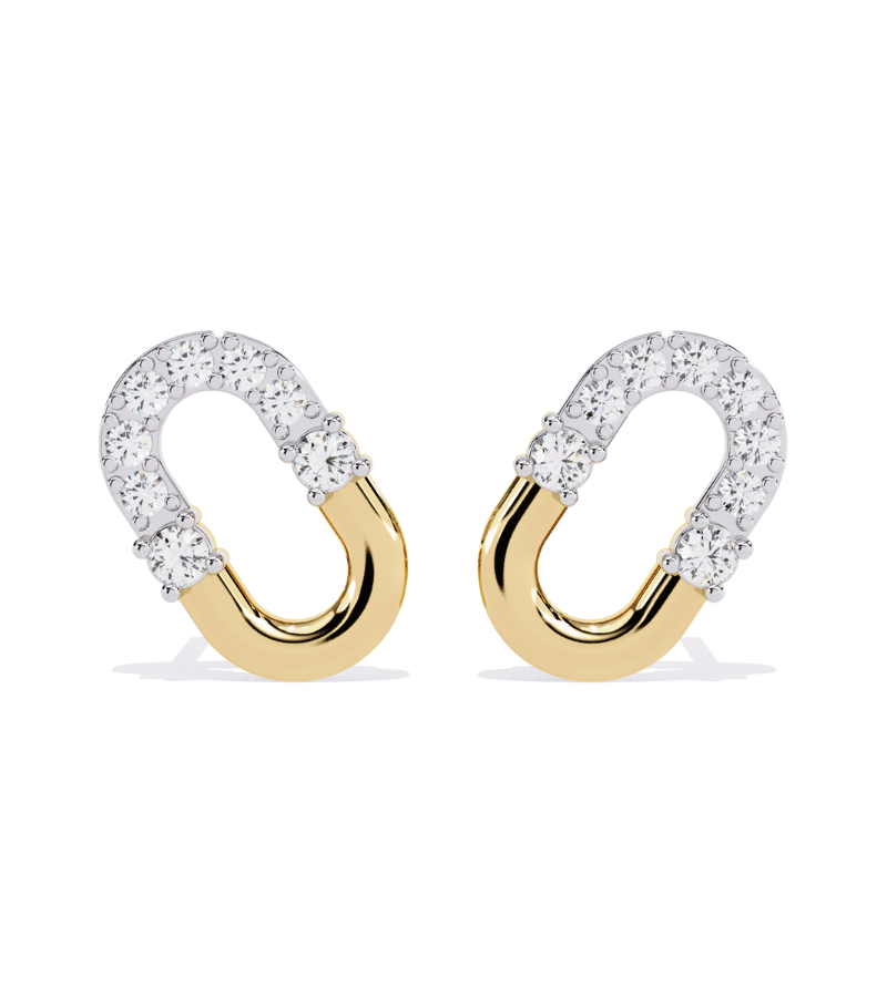 Crescent Duo Diamond Hoops pair a contemporary double-arc silhouette with classic diamond brilliance. Each earring features a pavé-diamond encrusted crescent that meets a polished gold-tone curve, creating a fluid, interwoven look from every angle. The warm metal backdrop enhances the diamonds’ fire, delivering a sophisticated statement piece ideal for gala nights, weddings, or refined evening occasions where a touch of opulence is desired.