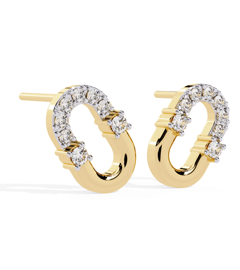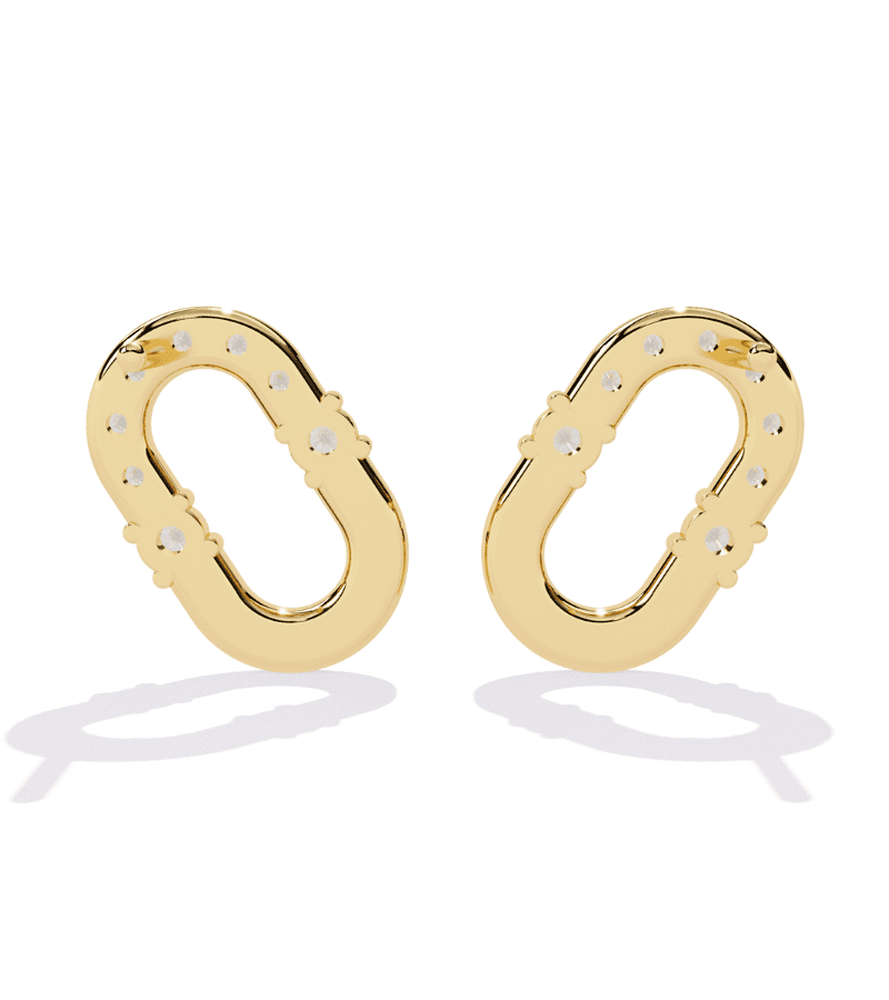 Gold-tone crescent hoops encrusted with pavé diamonds, forming a sparkling double-arc design.- Design: two mirrored crescent arcs connected by a graceful gold arc, all pavé-set with diamonds.