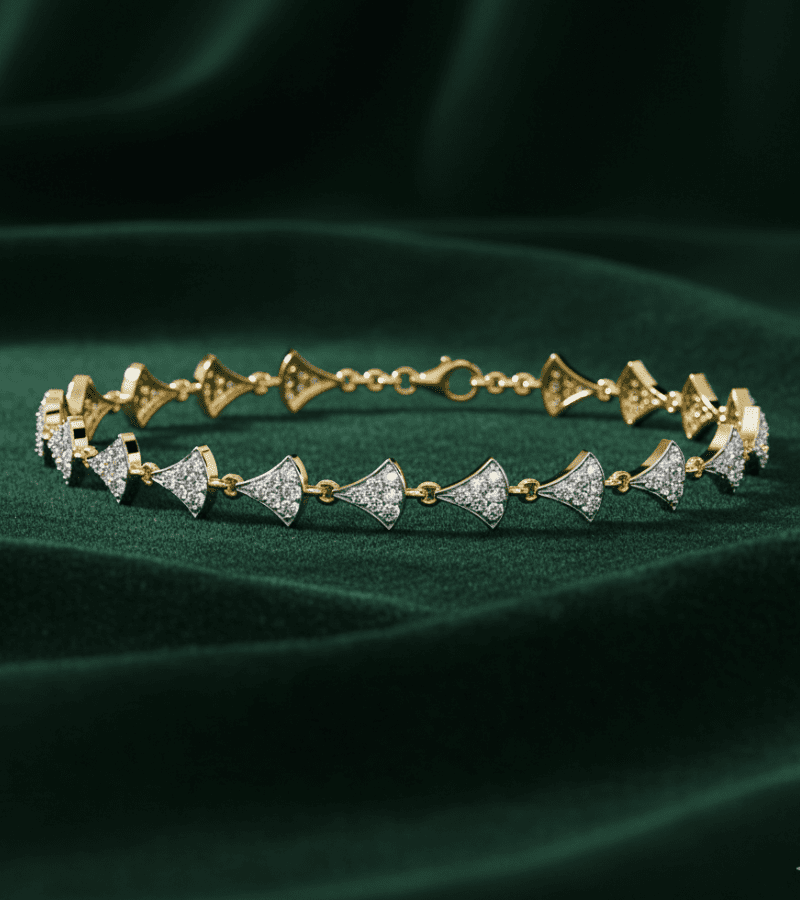 This bracelet presents a refined sequence of crescent motifs in two-tone metal, creating a subtle wave that wraps comfortably around the wrist. Each crescent is pavé-set with brilliant diamonds, catching light from every angle and enhancing the piece’s radiant shimmer. The alternating gold and silver-toned surfaces provide a contemporary contrast, while slim linking ensures a fluid, flexible fit. Perfect for gala events, cocktail nights, or elevating everyday ensembles with a touch of celestial glamour.