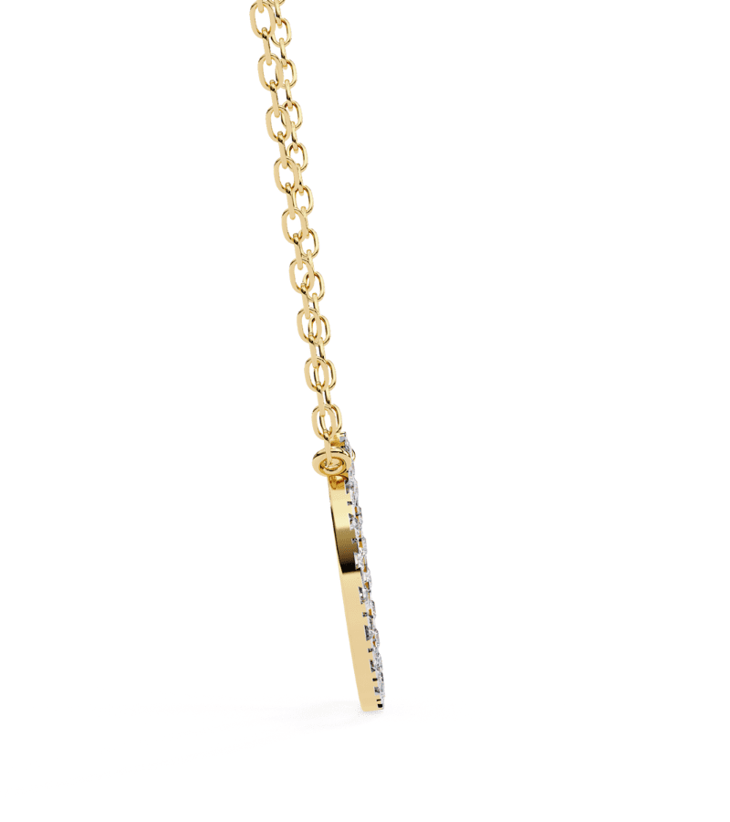 Gold-tone pavé-setlar pendant encrusted with pavé diamonds, suspended on a delicate chain.