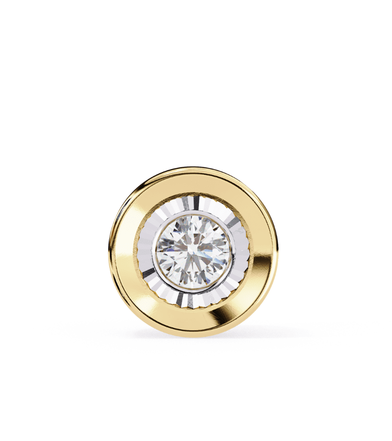 - Design: circular disc with a sparkling center stone and concentric halo.