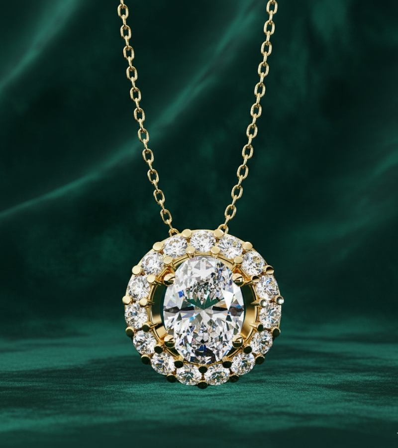 Diamond Halo Oval Pendant
