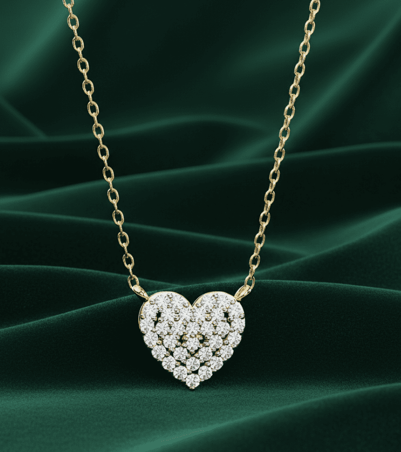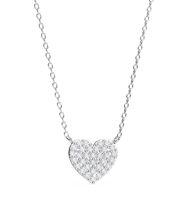 - Design: classic heart shape densely set with pavé diamonds for maximum brilliance.