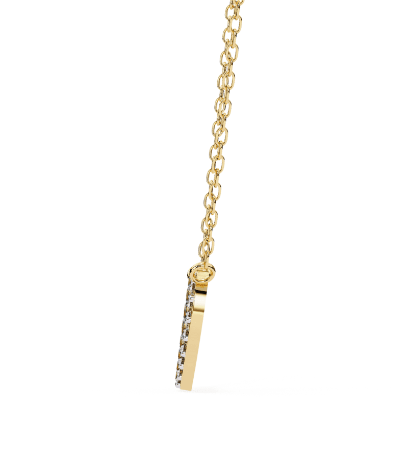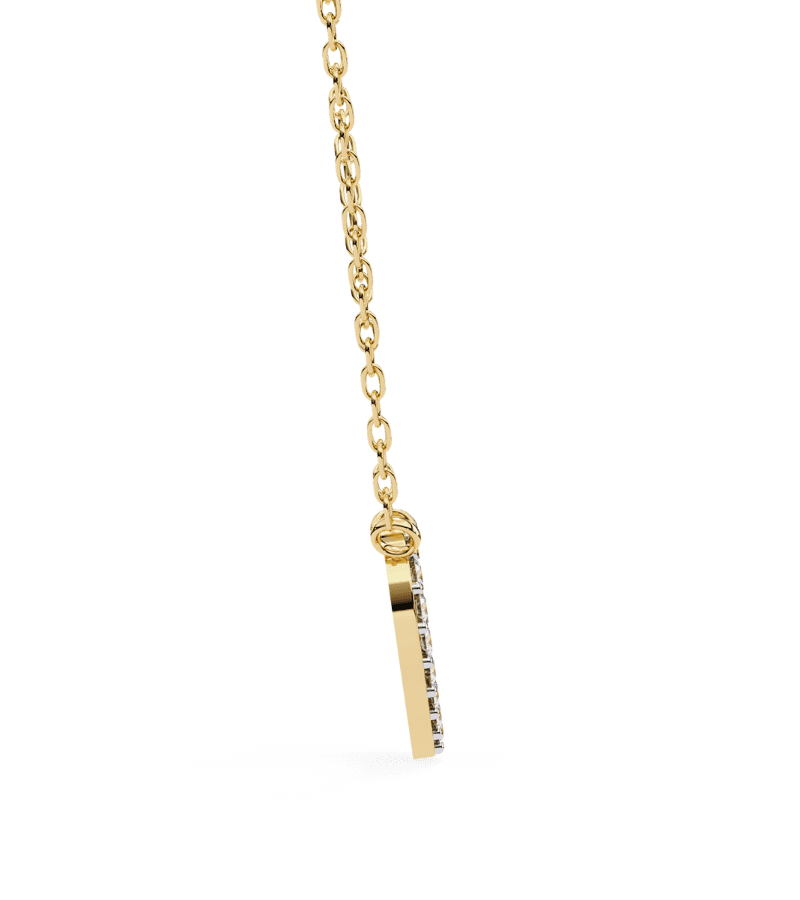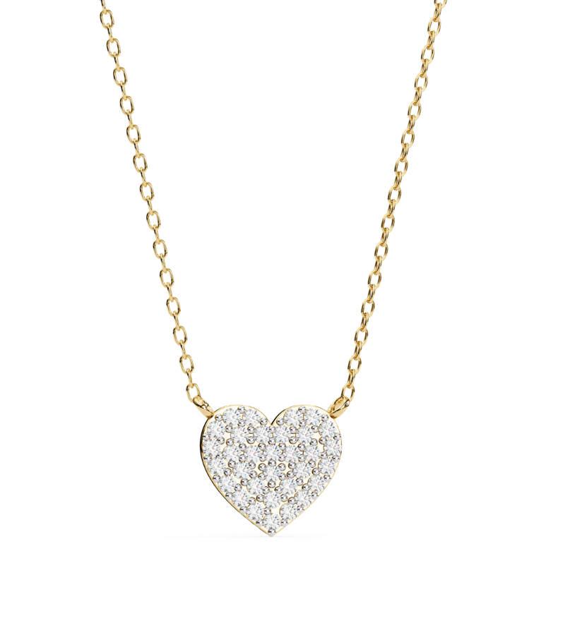 This pendant features a generous heart-shaped silhouette fully encrusted with pavé-set diamonds, creating a radiant surface of continuous sparkle. Crafted in warm gold-tone metal, the heart sits gracefully on a delicate chain that places the pendant at the collarbone, delivering a refined, romantic focal point. Perfect for pairing with both casual outfits and formal attire, it captures a bold yet elegant statement of love.