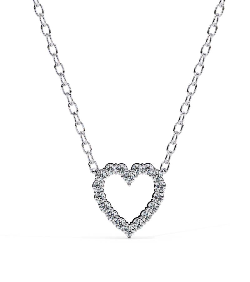 - Design: open-heart silhouette lined with uniform pavé diamonds.
