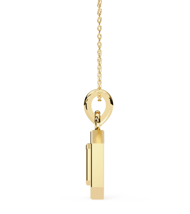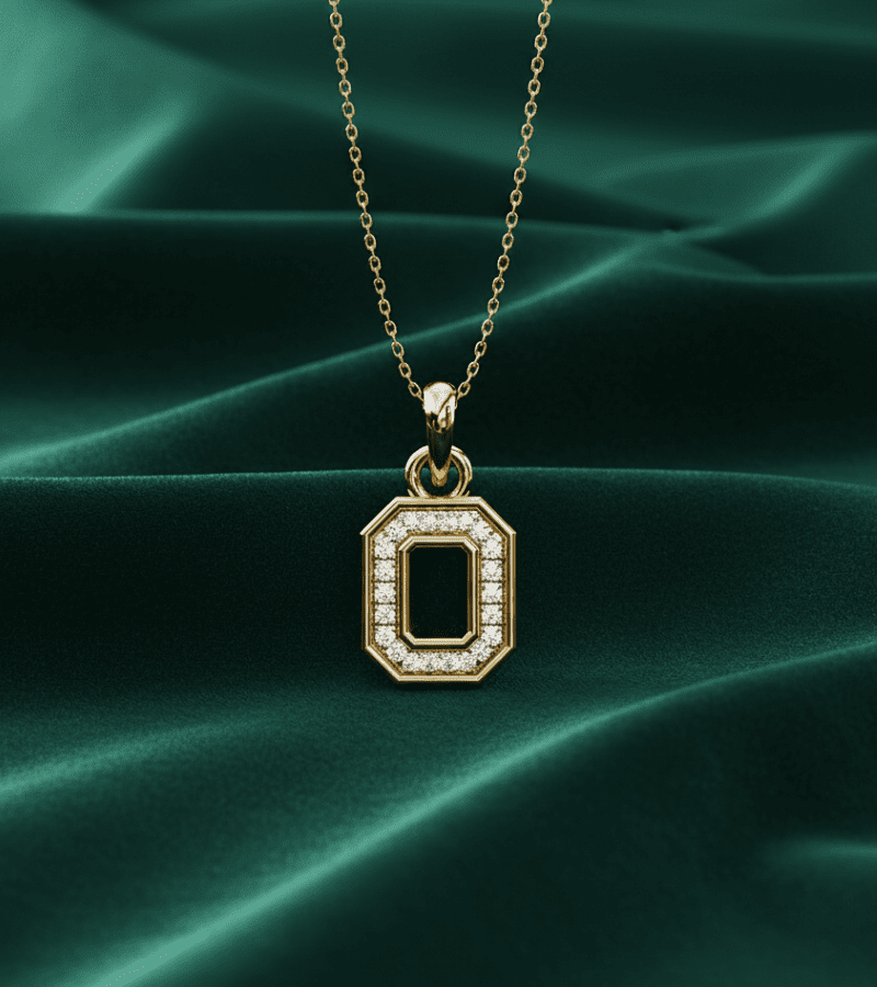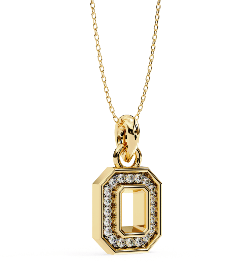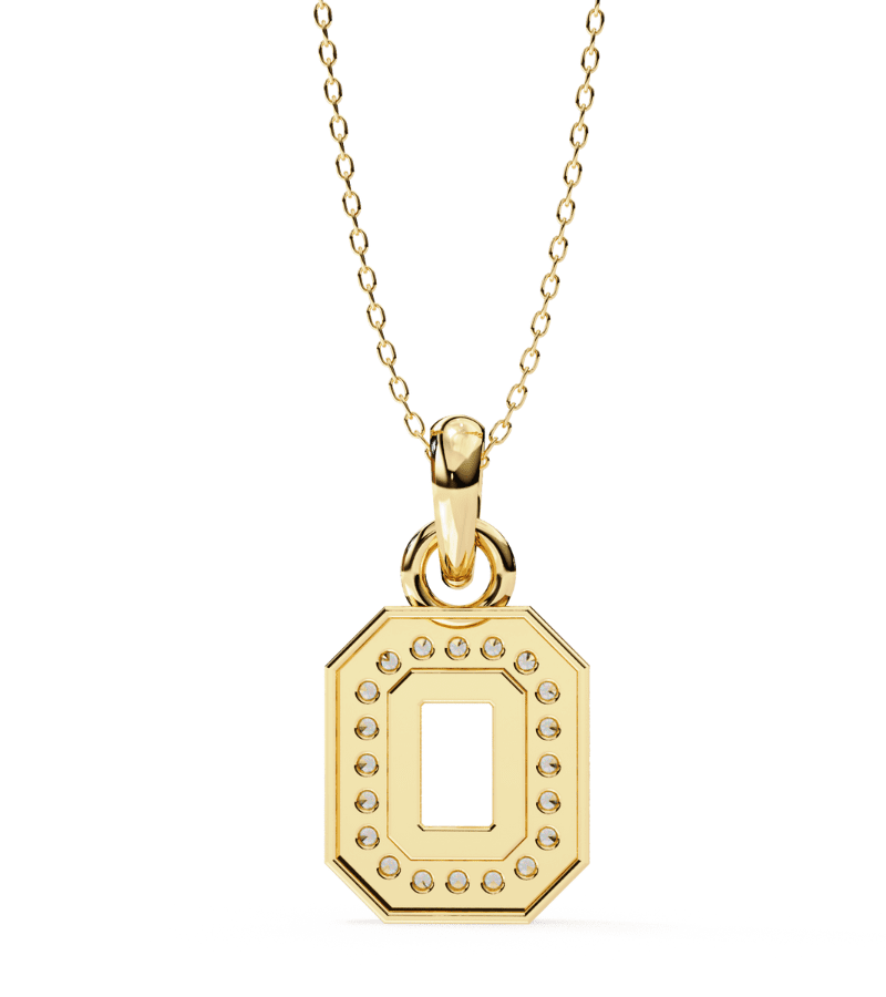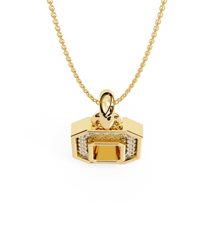 Gold-tone octagon pendant encrusted with pavé diamonds, hanging from a delicate chain.
