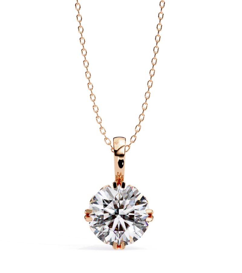 - Design: solitaire round-cut center stone with a secure prong setting.