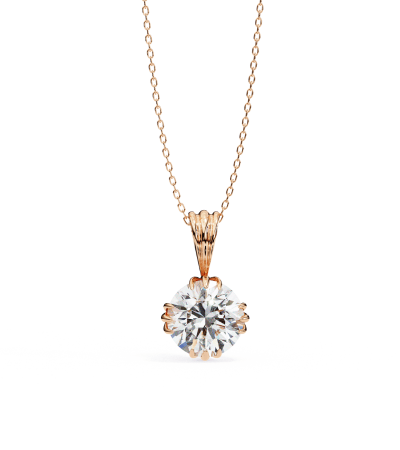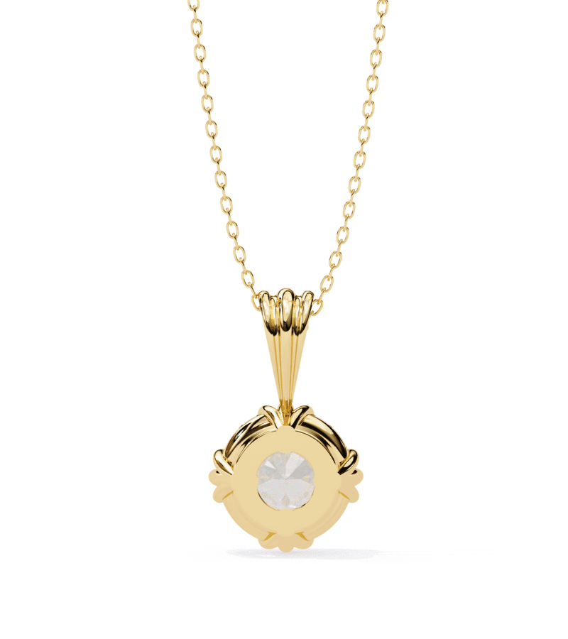 This pendant features a dazzling round-cut diamond-style stone held in a refined four-prong setting that maximizes light exposure and brilliance. The expertly cut facets allow the stone to shimmer with exceptional fire and clarity, ensuring sparkle from every angle. Suspended from a delicate gold-tone chain, the pendant sits gracefully at the collarbone, pairing beautifully with both casual attire and formal ensembles. With its timeless silhouette and radiant glow, this piece is an effortless everyday luxury and a stunning statement for special occasions.