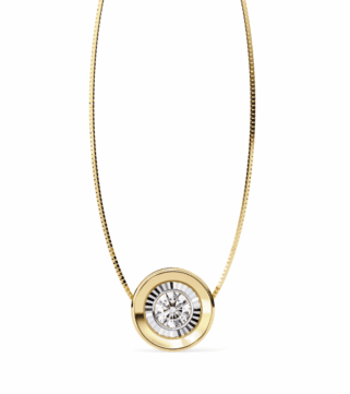 - Motif: modern geometric eclipse motif that highlights the stone’s sparkle.