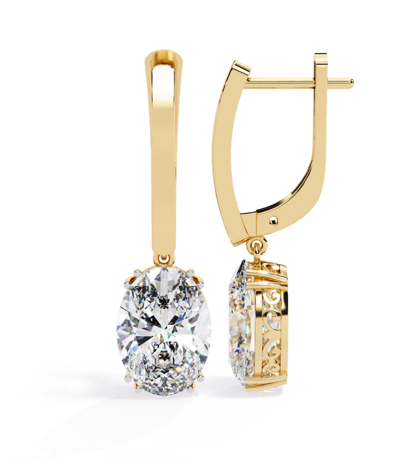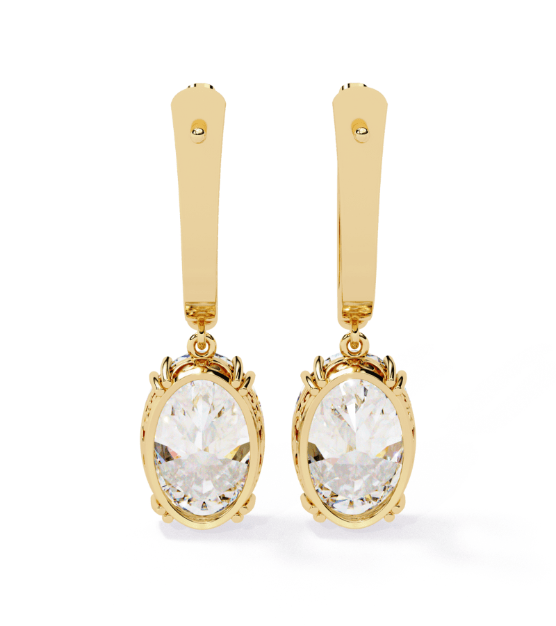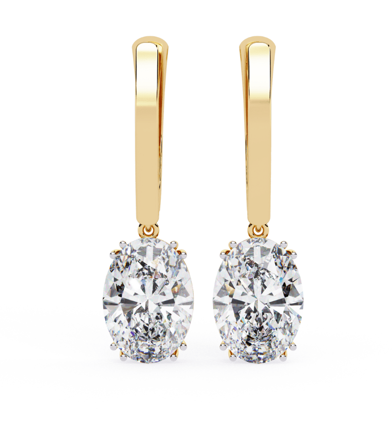 Gold-hoop drops with large oval brilliant-cut diamonds suspended as shimmering teardrops.- Design: gold-toned hinged hoops that cradle a single, large oval diamond drop.