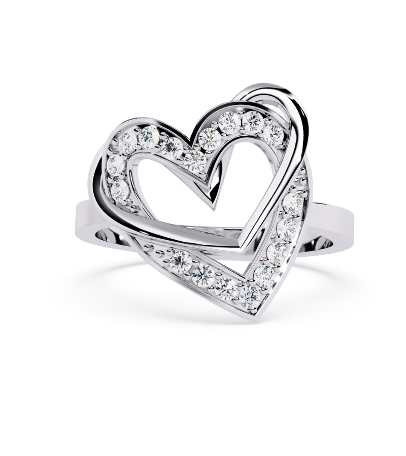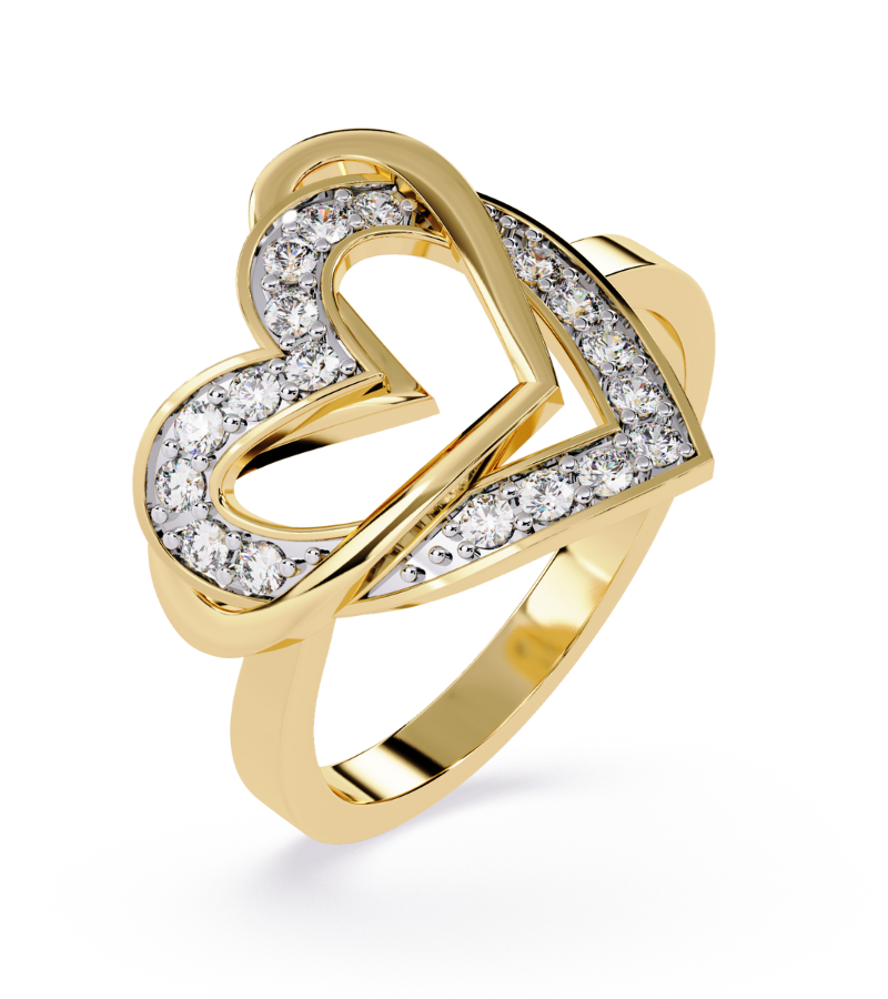 This ring presents a refined duet of hearts: a radiant pavé-diamond inner heart nestled within a luminous, open gold-tone outer heart. The overlapping curves create a dynamic, modern romance, while the bright, high-polish gold lends a timeless luxury. Delicate yet bold, the piece balances sparkle and shape for engagements, anniversaries, or elevated everyday elegance.