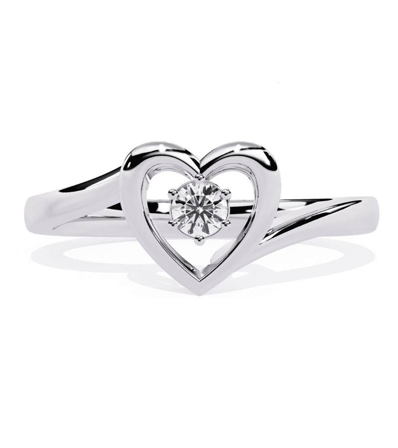 - Design: open heart motif formed by a split band that meets around a single central diamond.