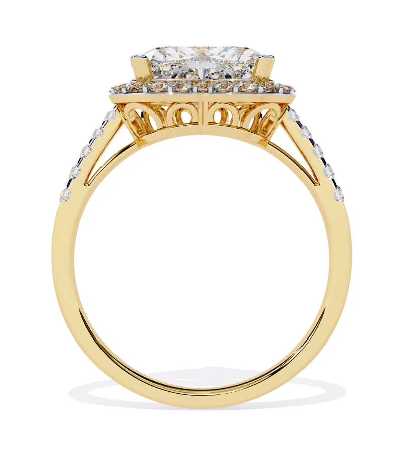- Setting: micro-pavé halo and a diamond-studded band for maximum sparkle.