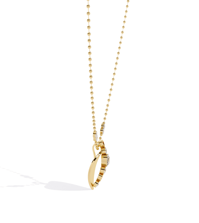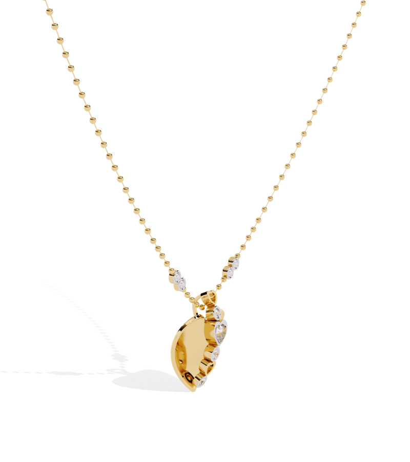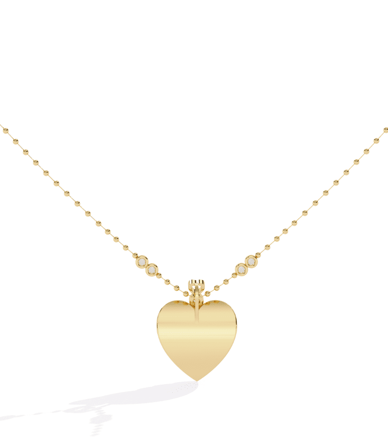 Gold-tone pendant with a layered heart motif, featuring a central gold heart, a smaller heart inset, and sparkling diamonds along a vertical link, suspended from a delicate beaded chain.- Design: dual-heart silhouette with a vertical diamond accent chain.
