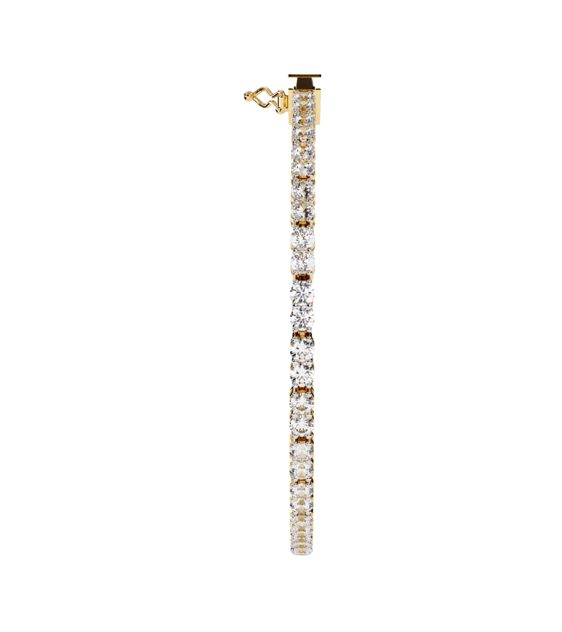 This bracelet presents a refined two-tone design where a narrow gold-tone band is adorned with a continuous pavé halo of diamonds, creating a radiant circle of brilliance around the wrist. The precise setting ensures each diamond catches light from every angle, producing a seamless ribbon of sparkle. A secure clasp completes the piece, offering both comfort and security for daily wear or special occasions. Perfect for gifting or elevating evening attire, the Horizon Halo Diamond Bracelet embodies understated luxury and timeless glamour.