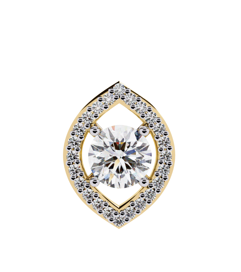 - Design: drop-shaped teardrop frame encrusted with pavé diamonds around a radiant center stone.