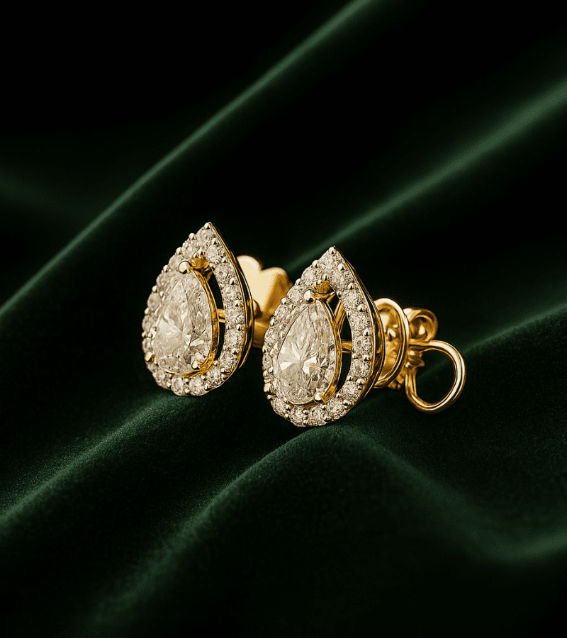 - Setting: warm gold-tone metal complements the diamonds’ brilliance.