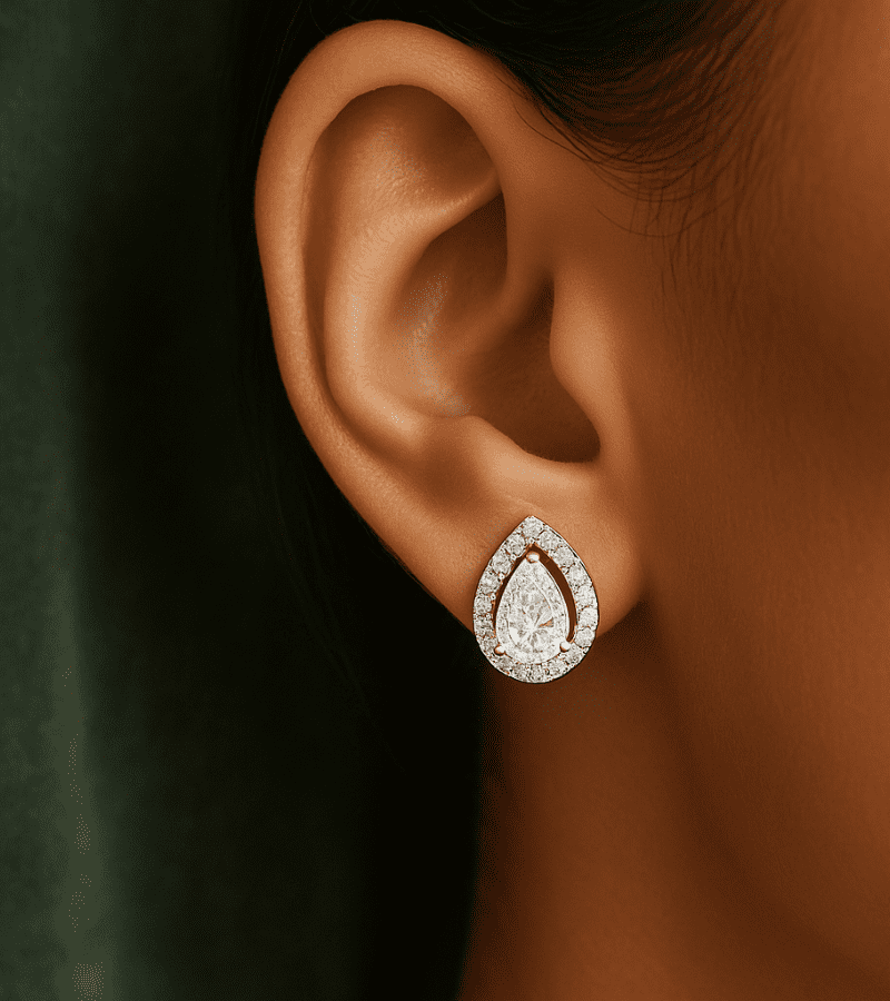- Motif: timeless teardrop shape with luminous halo accent.