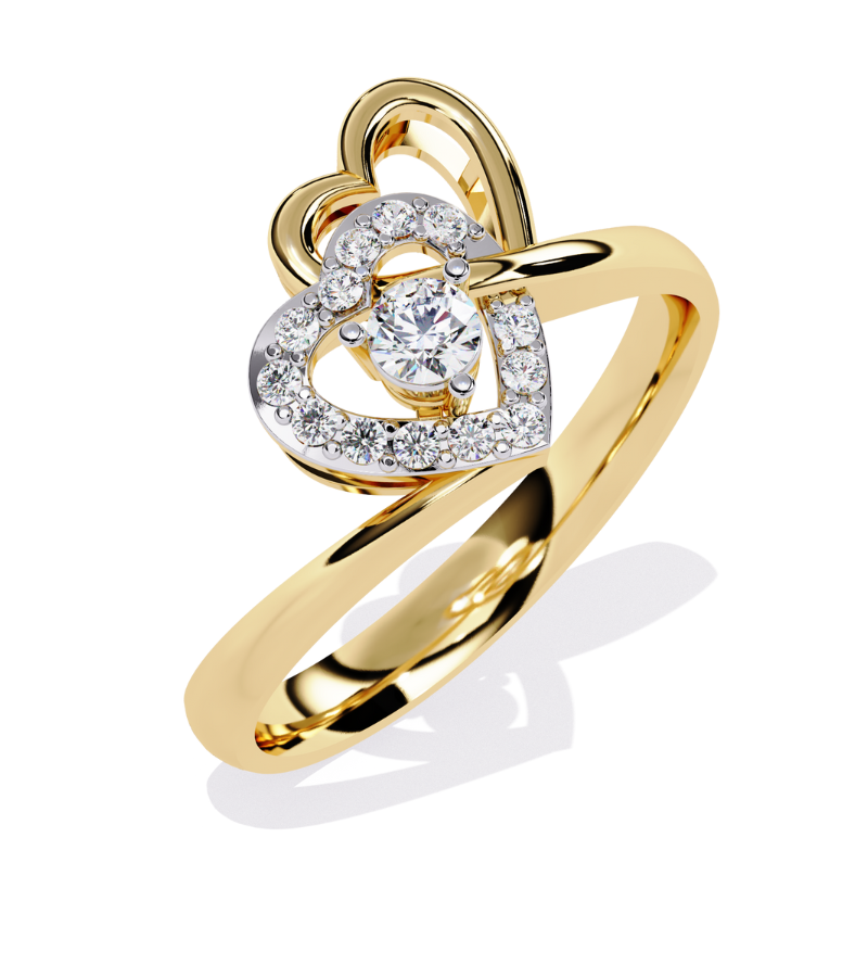 This ring centers a delicate pair of entwined hearts: a sparkly pavé-diamond heart entwined with a sleek gold-tone heart. The juxtaposition of glittering stones and smooth metal creates a balanced, modern romance. The slender band and petite scale make it a versatile piece for daily wear, stacking, or as a meaningful token for anniversaries and special occasions. Crafted in warm gold tones with a bright finish, it radiates playful elegance and timeless charm.